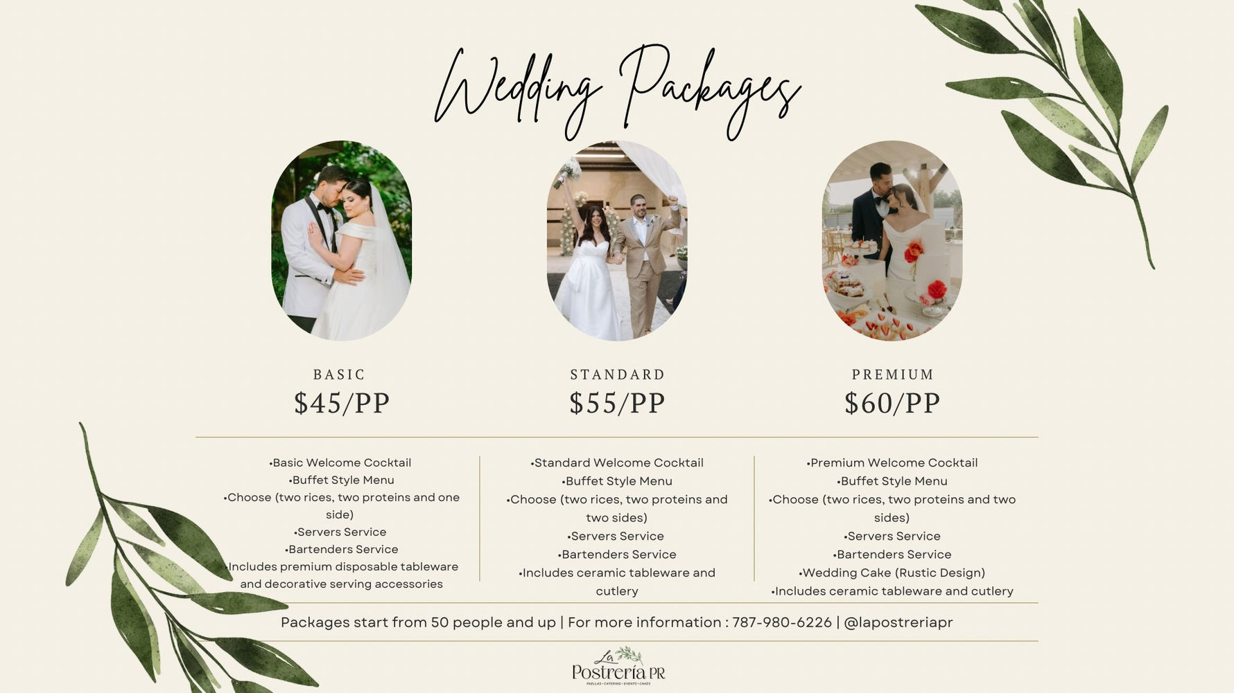 The prices of each wedding package vary depending on the high season (October, November, and December).